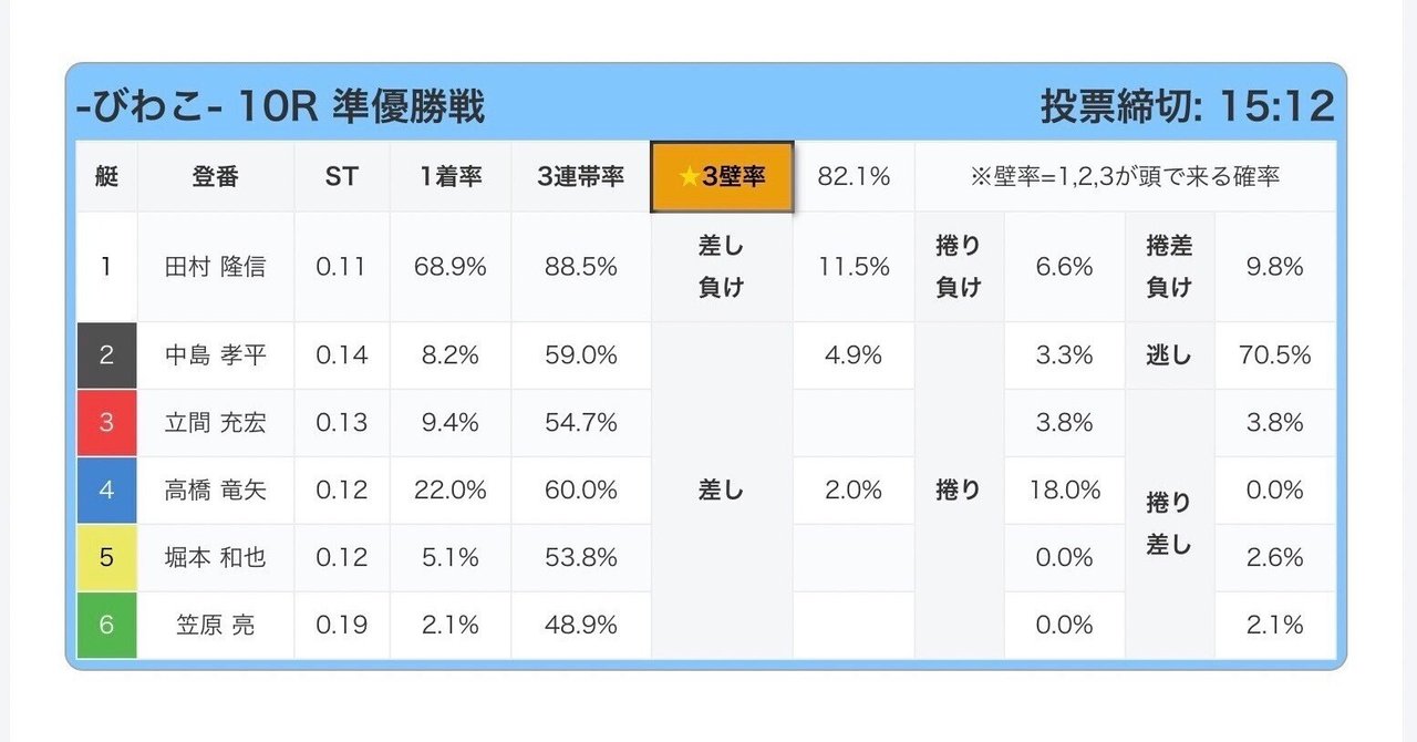 S📙びわこ10R15:12📙スーパー🌈1万配分準優勝 未分類 X Facebook はてブ Pocket LINE コピー 2024.10.19 S📙びわこ10R15:12📙スーパー🌈1万配分準優勝|🚤ミリオン競艇予想🚤日本一のオープンチャット業界初3壁率搭載、3が4の角受けになるかどうかを%で表示、好きなレースを検索出来ます