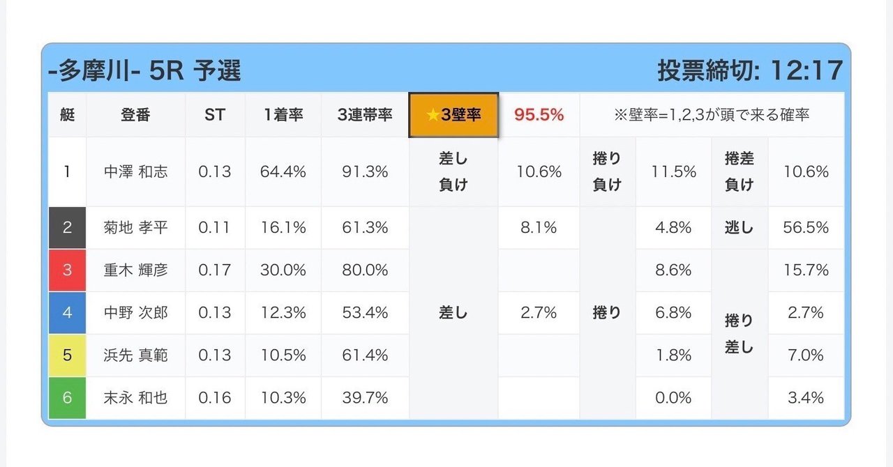 A📕多摩川5R12:17📕 未分類 X Facebook はてブ Pocket LINE コピー 2024.11.03 A📕多摩川5R12:17📕|🚤ミリオン競艇予想🚤日本一のオープンチャット業界初3壁率搭載、3が4の角受けになるかどうかを%で表示、好きなレースを検索出来ます