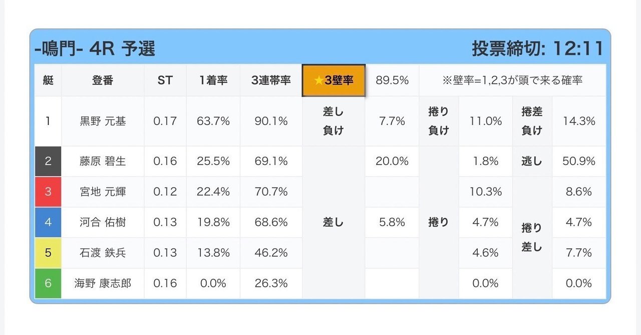 A📕鳴門4R12:11📕 未分類 X Facebook はてブ Pocket LINE コピー 2024.12.04 A📕鳴門4R12:11📕|🚤ミリオン競艇予想🚤日本一のオープンチャット業界初3壁率搭載、3が4の角受けになるかどうかを%で表示、好きなレースを検索出来ます