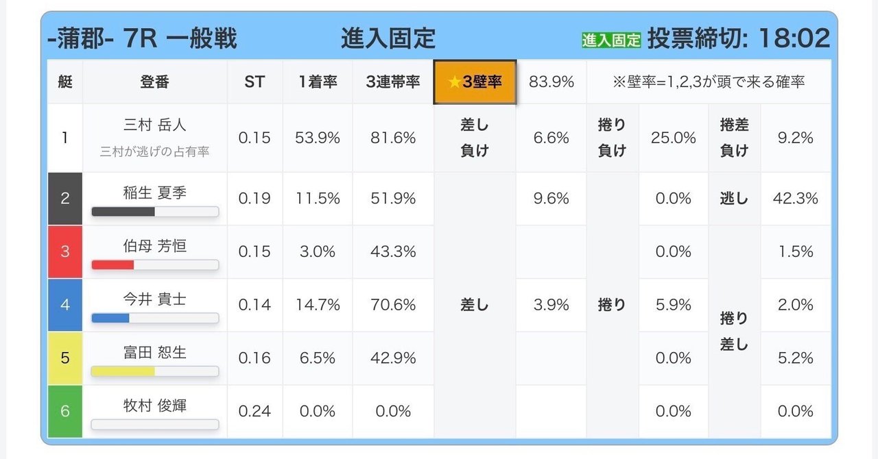 業界初3壁率搭載、3が4の角受けになるかどうかを%で表示、好きなレースを検索出来ます