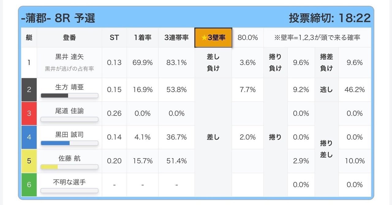 業界初3壁率搭載、3が4の角受けになるかどうかを%で表示、好きなレースを検索出来ます #競艇無料予想 #ボートレース #競艇 #競艇予想 #ボートレース予想 時間がある方はノートのいいねもお願いします。豆の方は全て1枚で買うか、枚数の多いと...