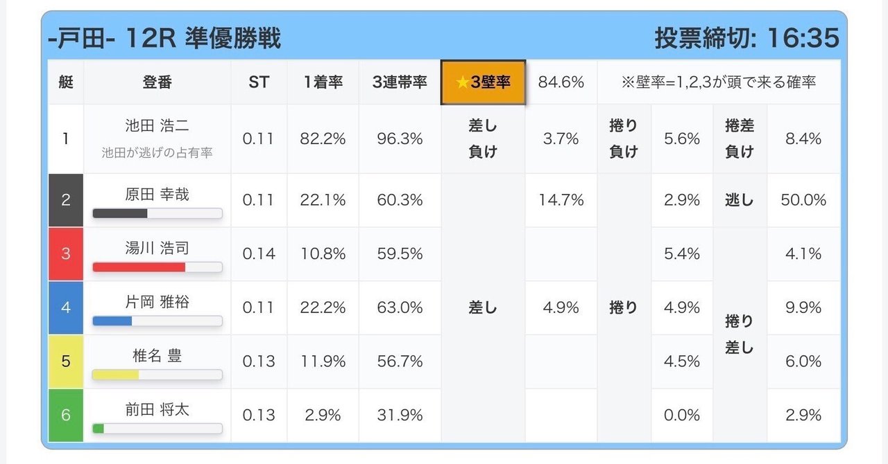 S📙戸田12R16:35📙スーパー🌈1.2万配分勝負、これだけ投票が集中する中、ままの人も全て1枚で中配当