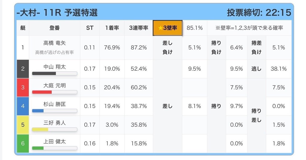 業界初3壁率搭載、3が4の角受けになるかどうかを%で表示、好きなレースを検索出来ます