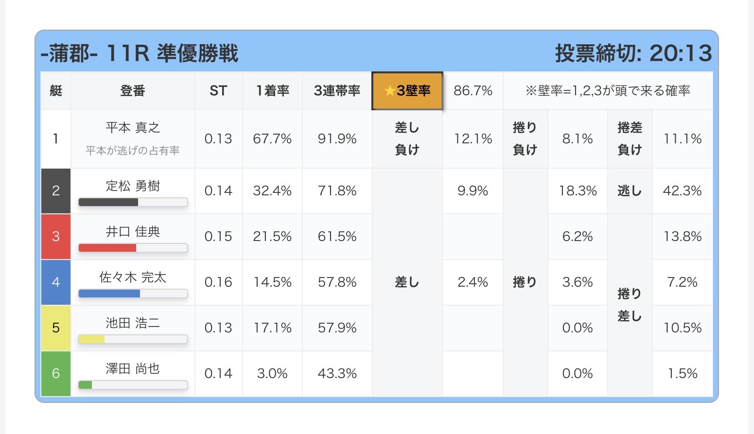 業界初3壁率搭載、3が4の角受けになるかどうかを%で表示、好きなレースを検索出来ます