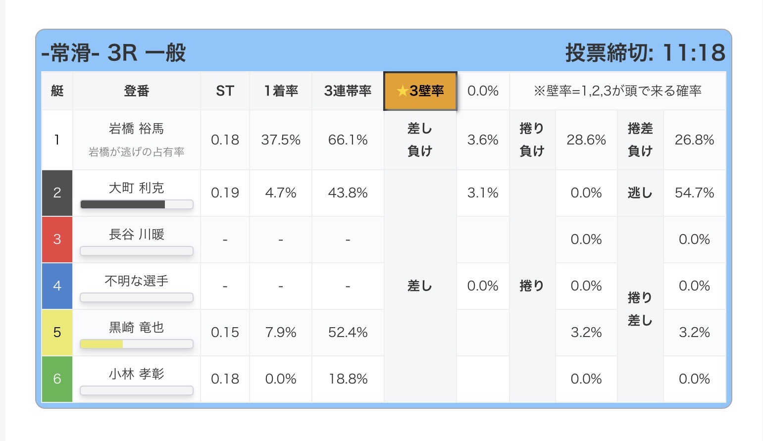 A📕常滑3R11:18📕 未分類 X Facebook はてブ Pocket LINE コピー 2025.10.20 A📕常滑3R11:18📕|🚤ミリオン競艇予想🚤日本一のオープンチャット 業界初3壁率搭載、3が4の角受けになるかどうかを%で表示、好きなレースを検索出来ます 出走予定表