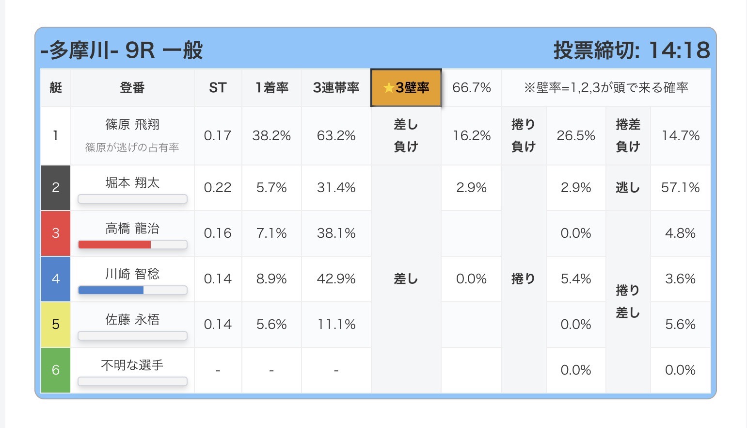 A📕多摩川9R14:18📕 未分類 X Facebook はてブ Pocket LINE コピー 2025.11.02 A📕多摩川9R14:18📕|🚤ミリオン競艇予想🚤日本一のオープンチャット 業界初3壁率搭載、3が4の角受けになるかどうかを%で表示、好きなレースを検索出来ます 出走予定表