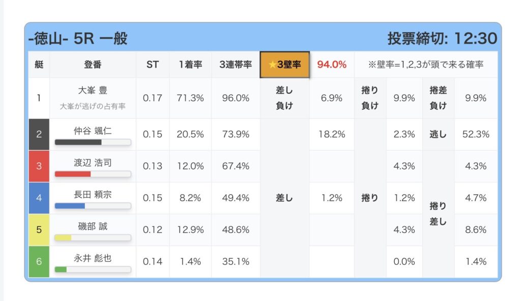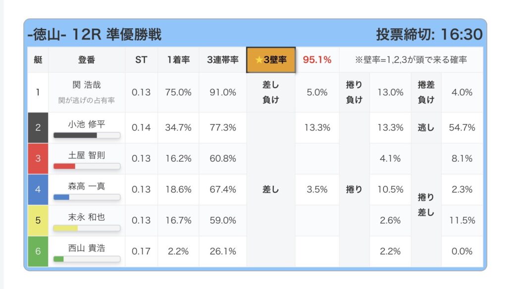 11/20 G1 徳山 徳山クラウン争奪戦開設72周年記念競走 5日目 未分類 X Facebook はてブ Pocket LINE コピー 2025.11.20 業界初3壁率搭載、3が4の角受けになるかどうかを%で表示、好きなレースを検索出来ます 出走予定表