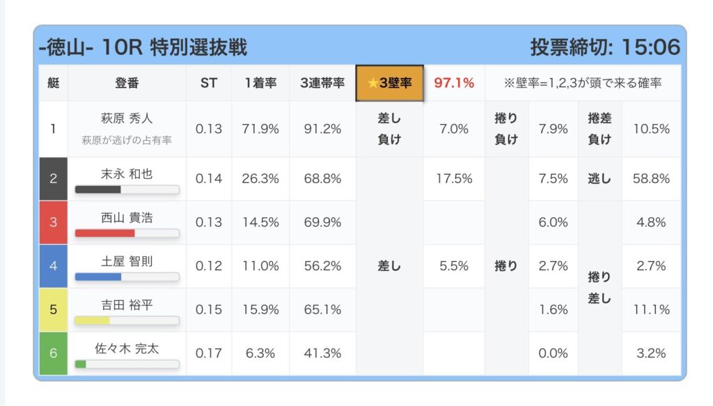11/21 G1 徳山 徳山クラウン争奪戦開設72周年記念競走 最終日 未分類 X Facebook はてブ Pocket LINE コピー 2025.11.21 業界初3壁率搭載、3が4の角受けになるかどうかを%で表示、好きなレースを検索出来ます 出走予定表