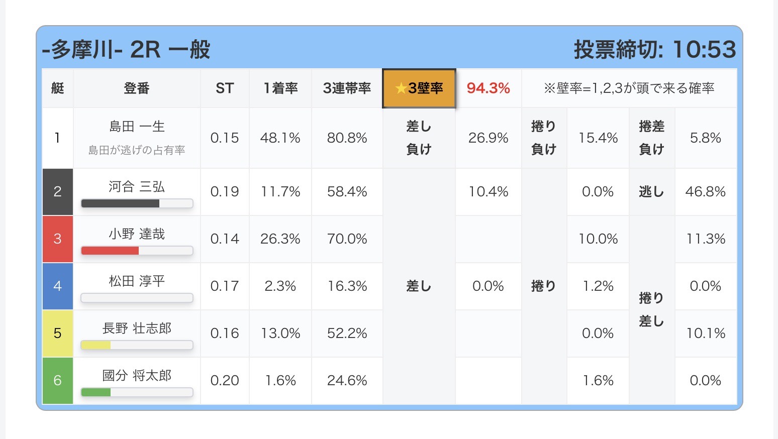 A📕多摩川2R10:53📕 未分類 X Facebook はてブ Pocket LINE コピー 2025.11.23 A📕多摩川2R10:53📕|🚤ミリオン競艇予想🚤日本一のオープンチャット 業界初3壁率搭載、3が4の角受けになるかどうかを%で表示、好きなレースを検索出来ます 出走予定表