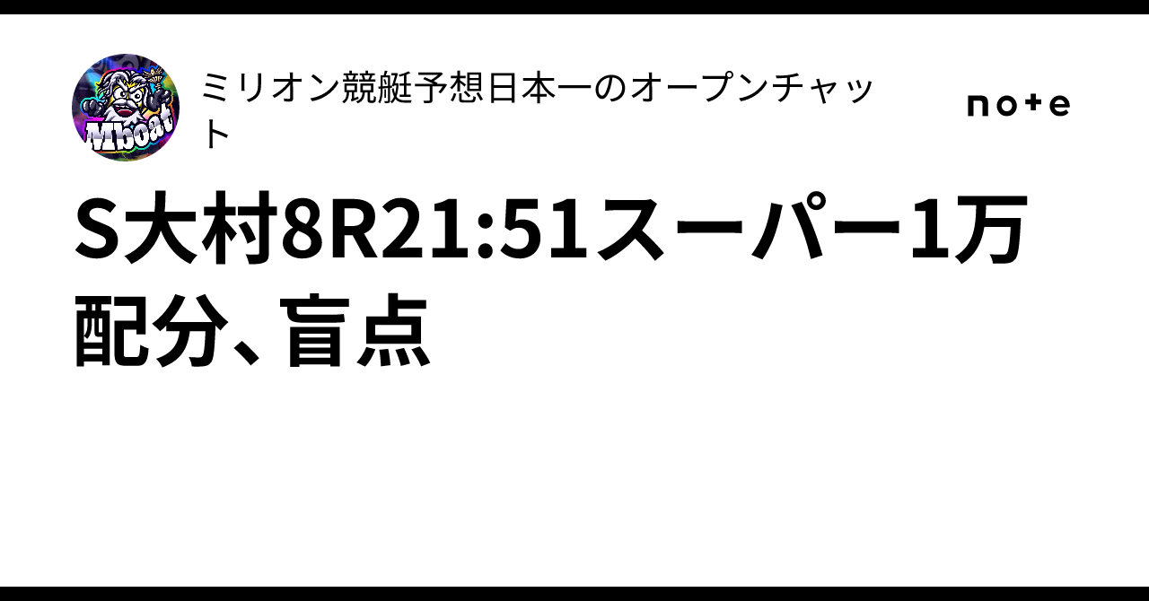 S📙大村8R21:51📙スーパー🌈1万配分、盲点|🚤ミリオン競艇予想🚤日本一のオープンチャット