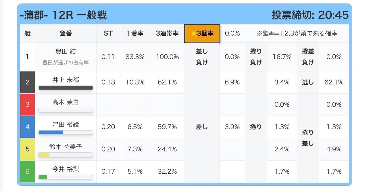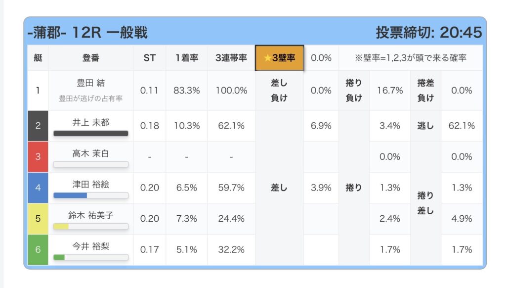 業界初3壁率搭載、3が4の角受けになるかどうかを%で表示、好きなレースを検索出来ます