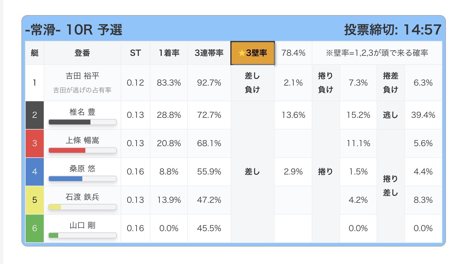 A📕常滑10R14:57📕 未分類 X Facebook はてブ Pocket LINE コピー 2025.12.07 A📕常滑10R14:57📕|🚤ミリオン競艇予想🚤日本一のオープンチャット 業界初3壁率搭載、3が4の角受けになるかどうかを%で表示、好きなレースを検索出来ます 出走予定表