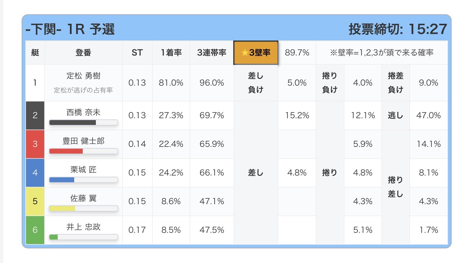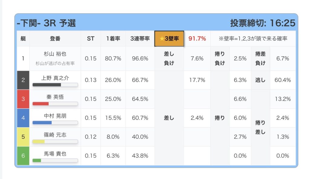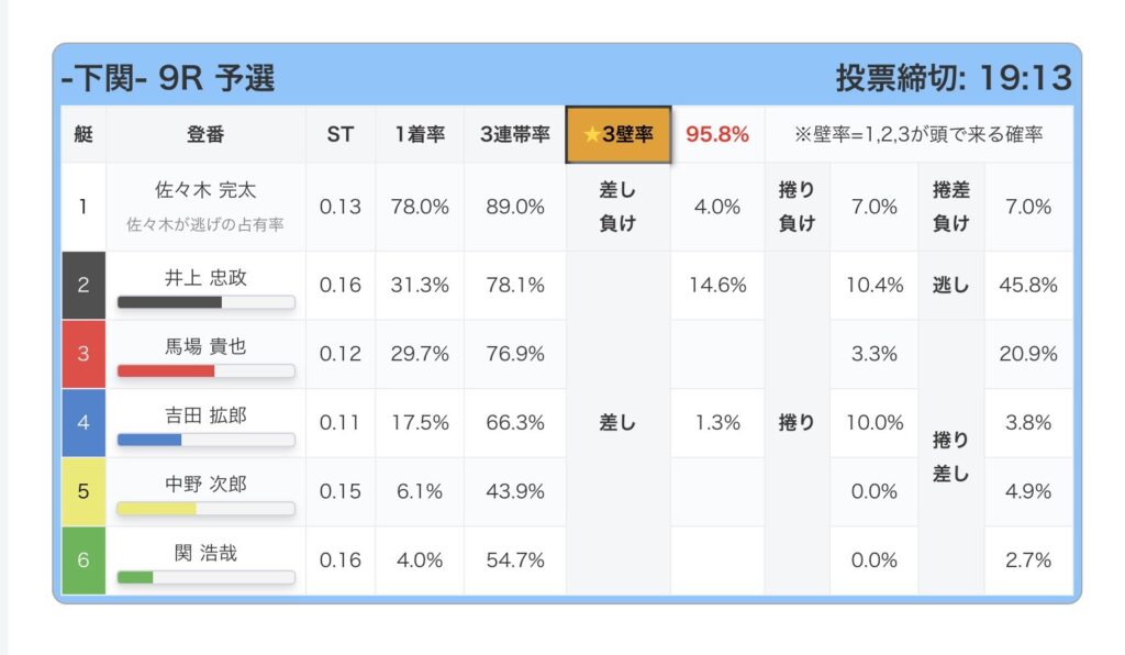 12/7 G1 下関 開設71周年記念 海響王決定戦 初日 未分類 X Facebook はてブ Pocket LINE コピー 2025.12.07 業界初3壁率搭載、3が4の角受けになるかどうかを%で表示、好きなレースを検索出来ます 出走予定表