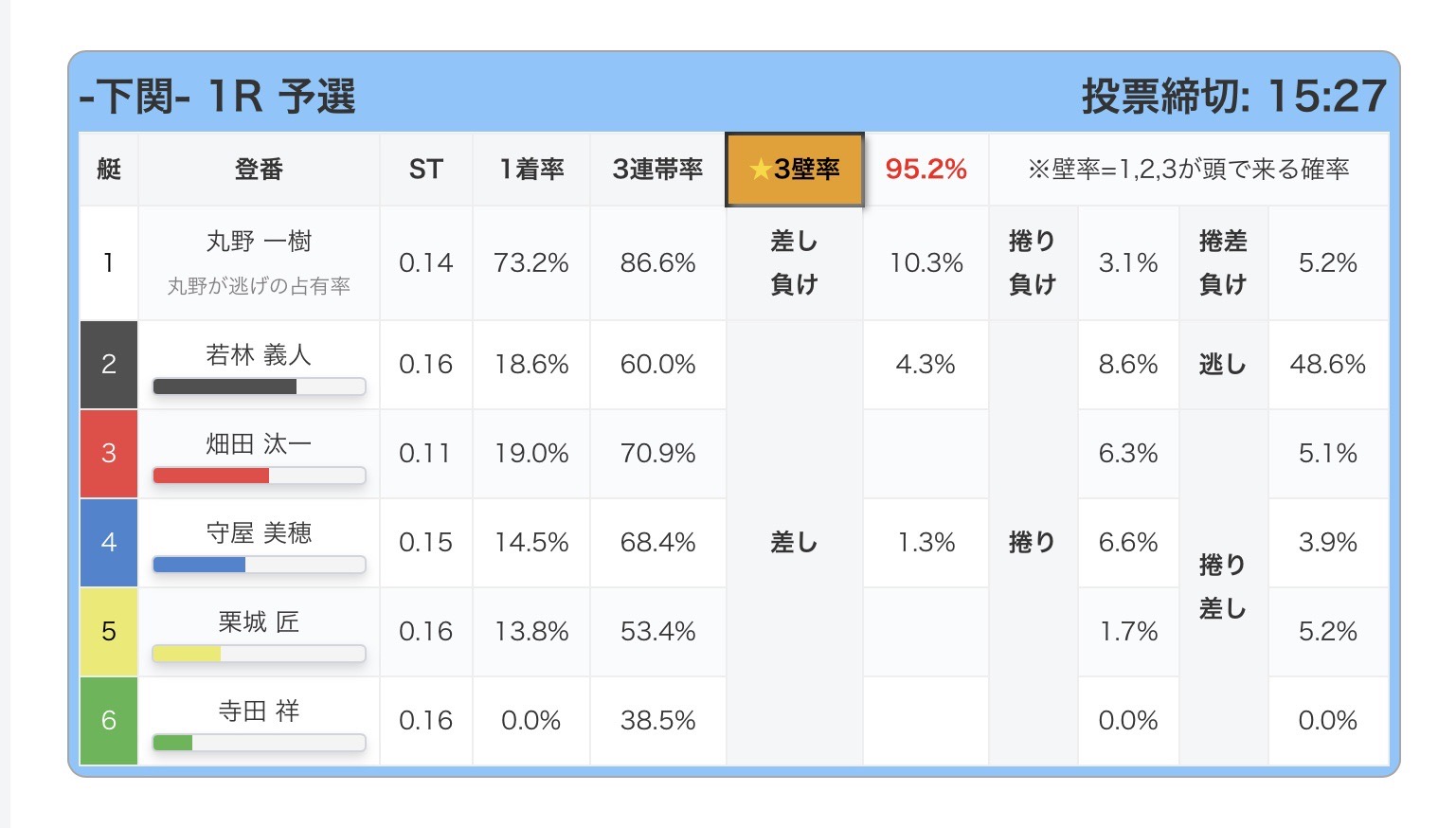 A📕下関1R15:27📕 未分類 X Facebook はてブ Pocket LINE コピー 2025.12.10 A📕下関1R15:27📕|🚤ミリオン競艇予想🚤日本一のオープンチャット 業界初3壁率搭載、3が4の角受けになるかどうかを%で表示、好きなレースを検索出来ます 出走予定表