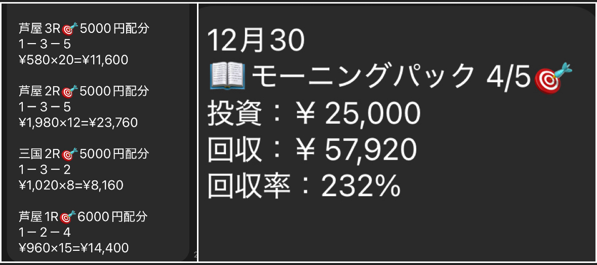 📚12月31日モーニングパック📚RPで割引🈹|🚤ミリオン競艇予想🚤日本一のオープンチャット