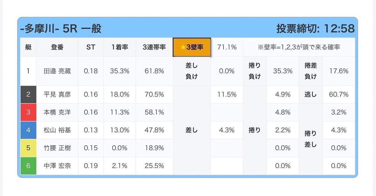 A📕多摩川5R12:58📕 未分類 X Facebook はてブ Pocket LINE コピー 2024.09.22 A📕多摩川5R12:58📕|🚤ミリオン競艇予想🚤日本一のオープンチャット業界初3壁率搭載、3が4の角受けになるかどうかを%で表示、好きなレースを検索出来ます 出走予定表/