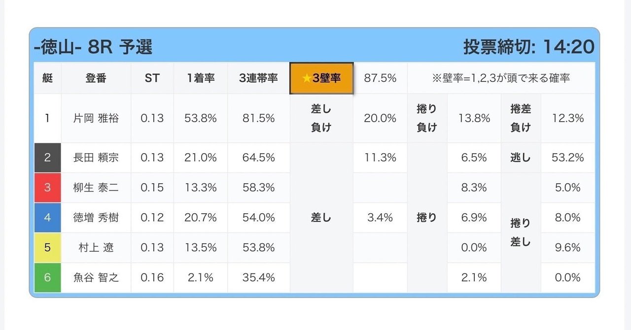A📕徳山8R14:20📕 未分類 X Facebook はてブ Pocket LINE コピー 2024.09.24 A📕徳山8R14:20📕|🚤ミリオン競艇予想🚤日本一のオープンチャット業界初3壁率搭載、3が4の角受けになるかどうかを%で表示、好きなレースを検索出来ます 出走予定表/