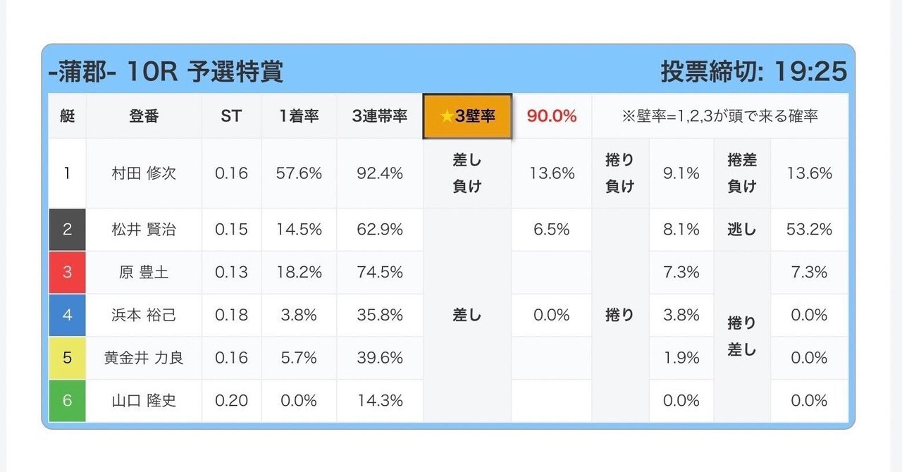 業界初3壁率搭載、3が4の角受けになるかどうかを%で表示、好きなレースを検索出来ます 出走予定表/ 出走予定表 milionboat1019.com