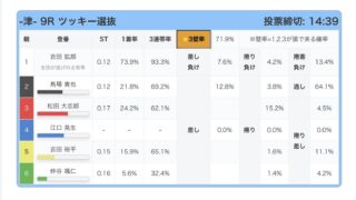業界初3壁率搭載、3が4の角受けになるかどうかを%で表示、好きなレースを検索出来ます