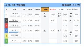 業界初3壁率搭載、3が4の角受けになるかどうかを%で表示、好きなレースを検索出来ます